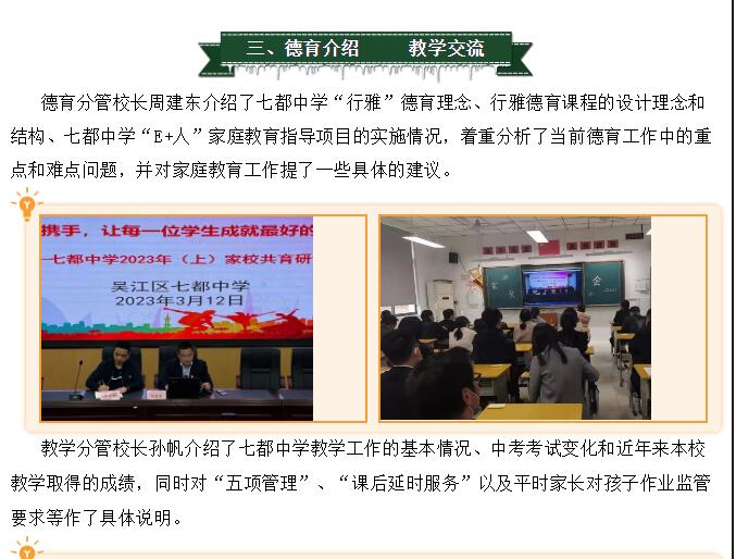家校携手,让每一位学生成就最好的自己 ——七都中学家校共育研讨会暨“E+人”家长学校