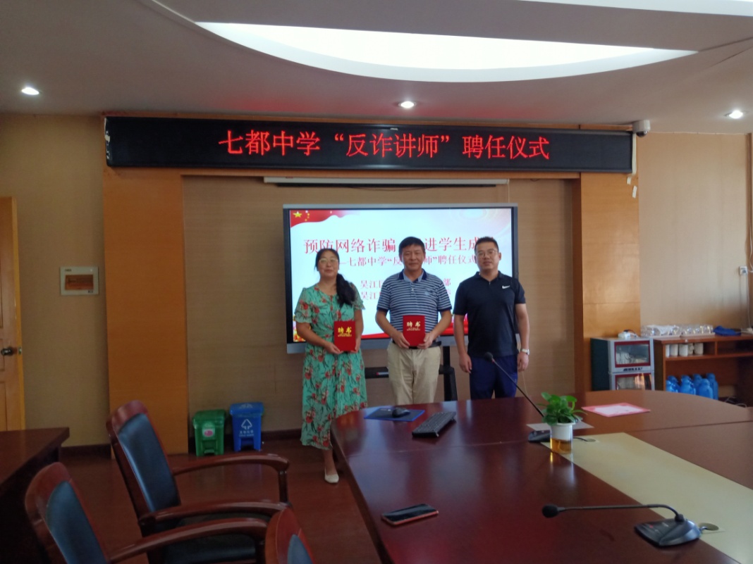 根据学校创建活动方案,9月24日,七都中学党支部、关工委特别聘任陈晓华、宋阿二两位学校关工委的老教师担任学校的反诈讲师。七都中学副校长、关工委主任周建东为两位老师颁发聘书。