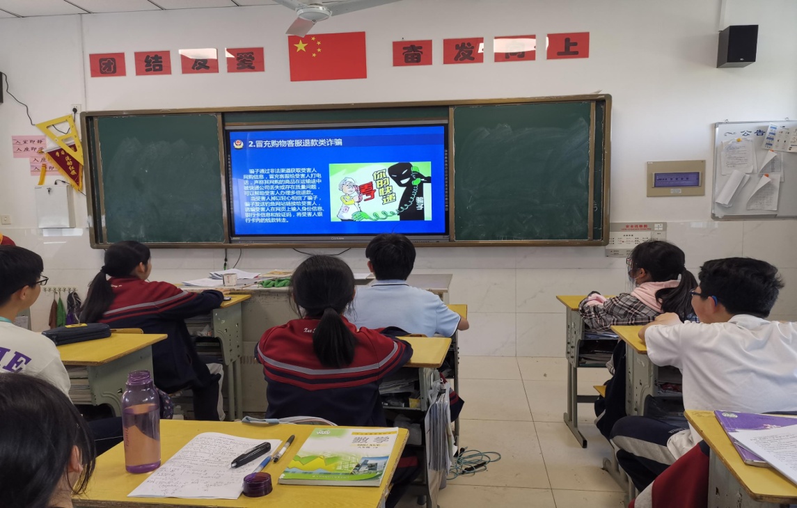 借助学校所在社区、派出所等资源利用各班主题班会、学校升旗仪式等时机对学生及家长开展反诈知识宣讲,提升反诈宣传教育的针对性和实效性。