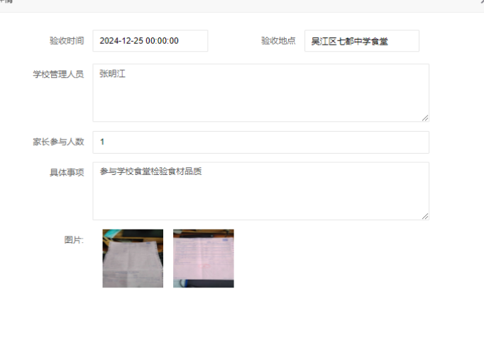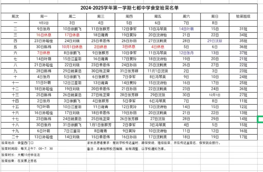 七都中学食堂教师,家长志愿者,行政三方食堂验菜名单